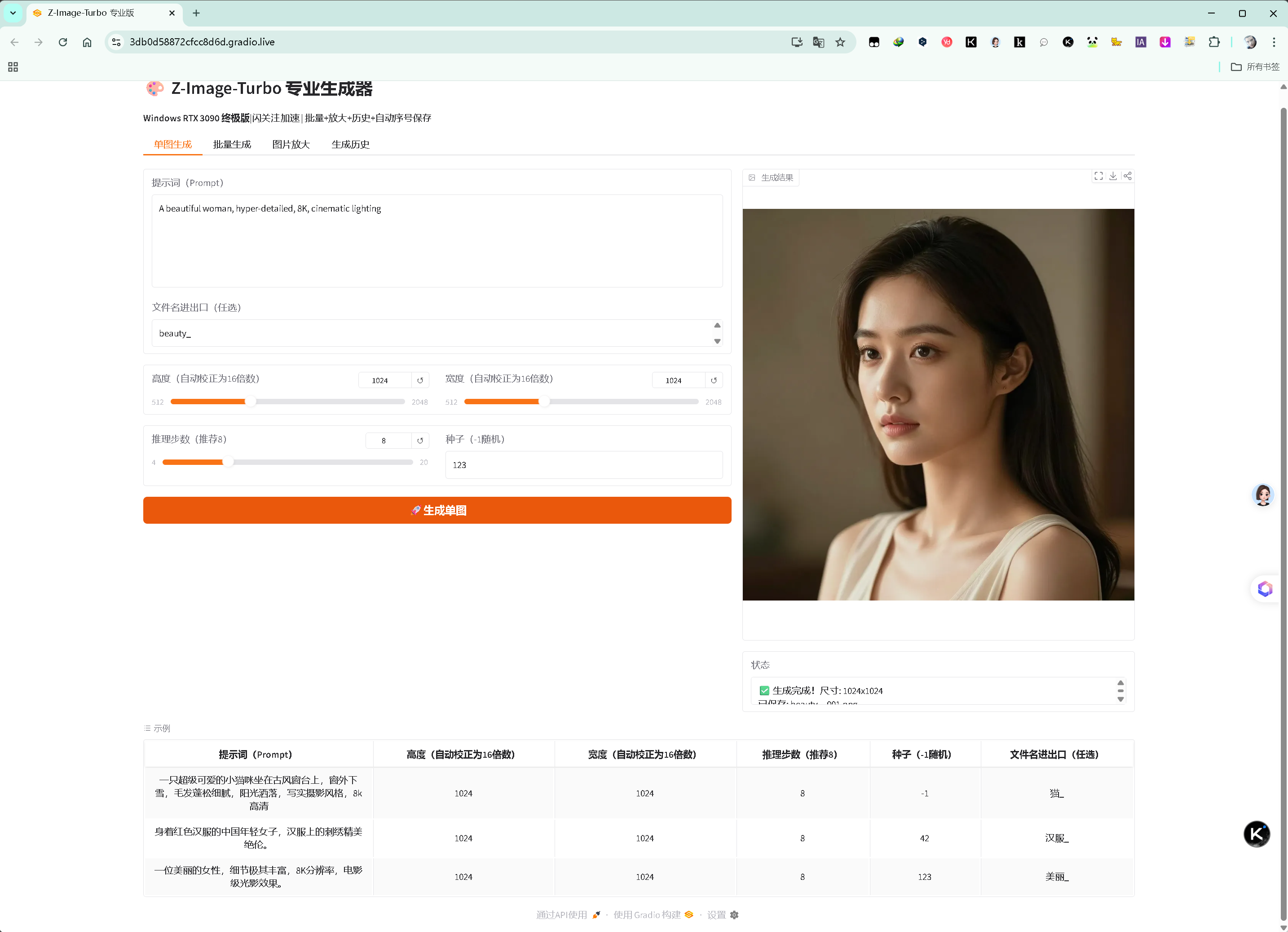 # Z-Image-Turbo 专业版 Gradio 生成器(Windows RTX 3090 终极稳定版)