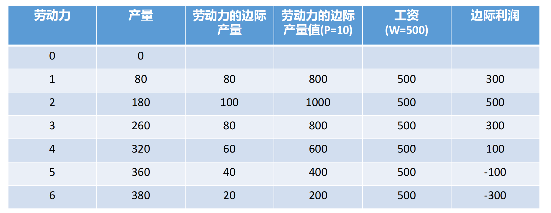 - 当雇佣第 3 个工人时:边际产量 MPL 为 80,边际产量值 VMPL = 80 * 10 = 800。此时 800 > 500(工资),边际利润为 300。雇佣这个工人是划算的。