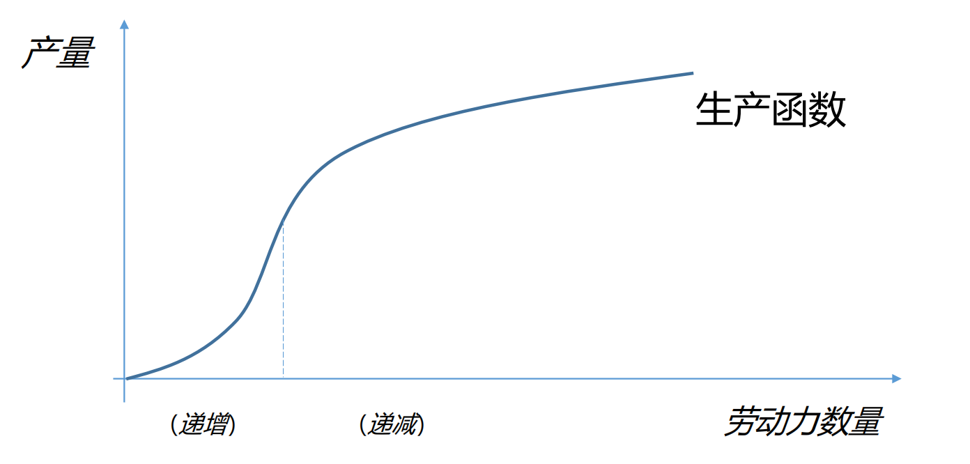 生产函数曲线并不是一条直线,而是呈现出先陡峭、后平缓的形态。