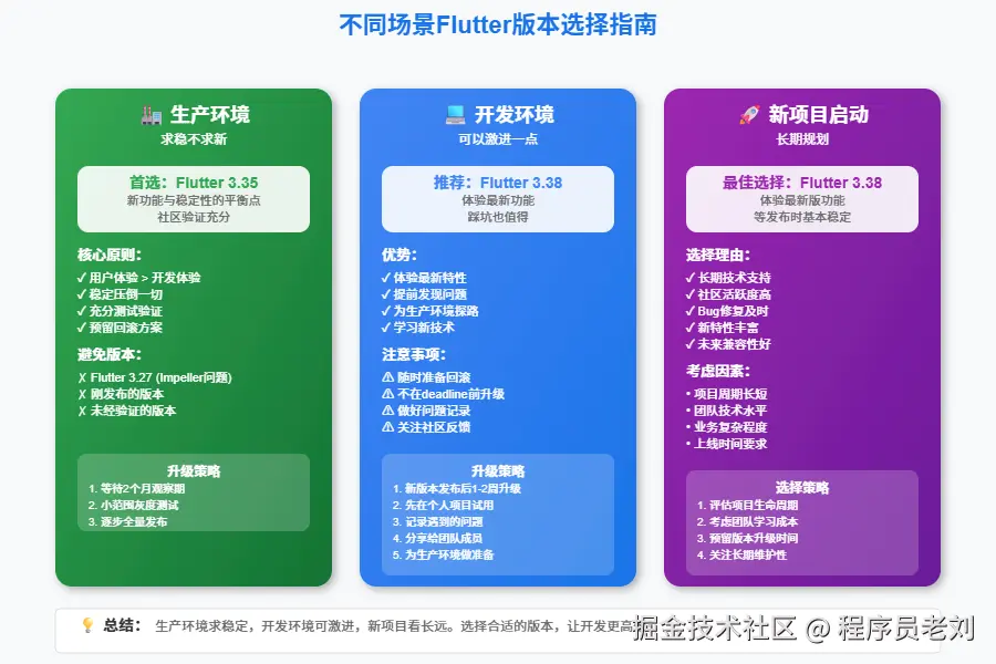 - 何时选3.38? :如果你的App急需 Google Play 16 KB 页面大小兼容 (Android)或者非常依赖 Widget Previewer 进行开发,且团队有能力处理iOS的