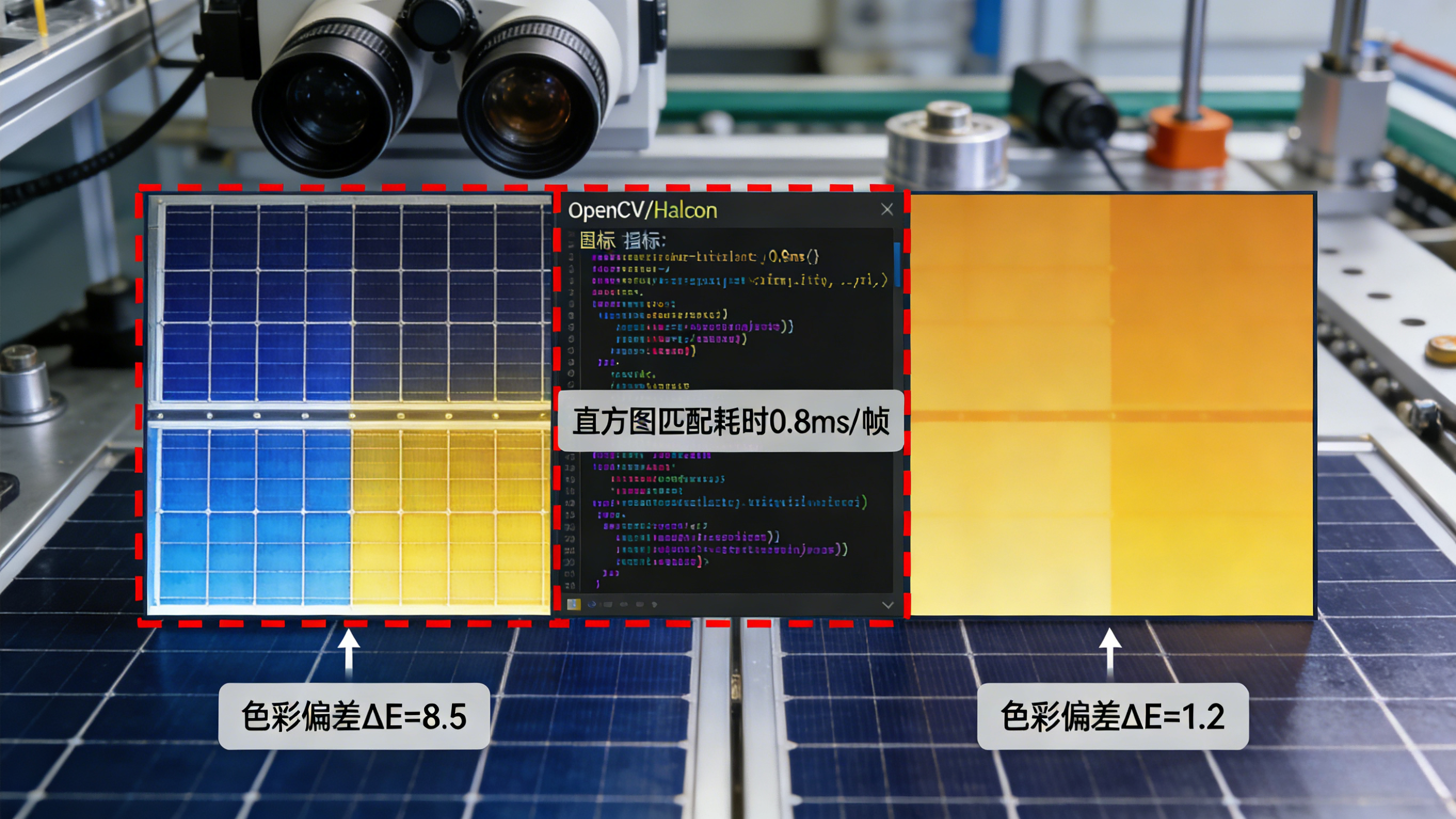 做工业视觉拼接的工程师,几乎都栽过"色彩偏差"的跟头:多台相机拍摄的同一块光伏板,有的偏蓝、有的偏黄,拼接后出现明显的色彩断层;跨产线采集的汽车车身图像,不同设备拍出来的漆面亮度天差地别,拼接后的全景图成了"调色盘",直接导致缺陷检测漏判。