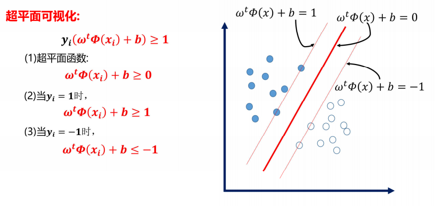 在SVM中,使用 +1 和 -1 来区分不同类别的样本,而不是常见的 0 和 1。这样的表示更严格。并且规定,如果超平面能够将训练样本正确分类,那么对于任意样本: