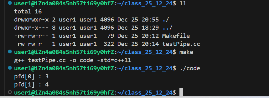 // 一般来说,pfd[0] -> 读端 pfd[1] -> 写端