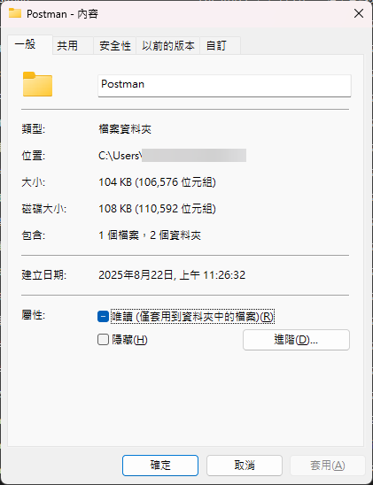 Postman Agent的資料夾。 - 關鍵動作 :將該資料夾名稱修改為