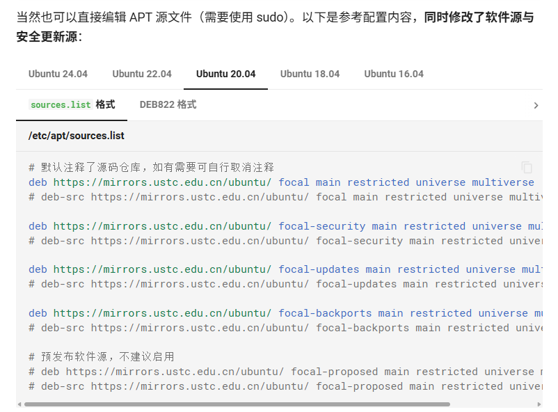 deb https://mirrors.ustc.edu.cn/ubuntu/ focal main restricted universe multiverse