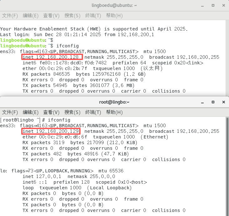 例如:ssh lingboedu@192.168.200.128