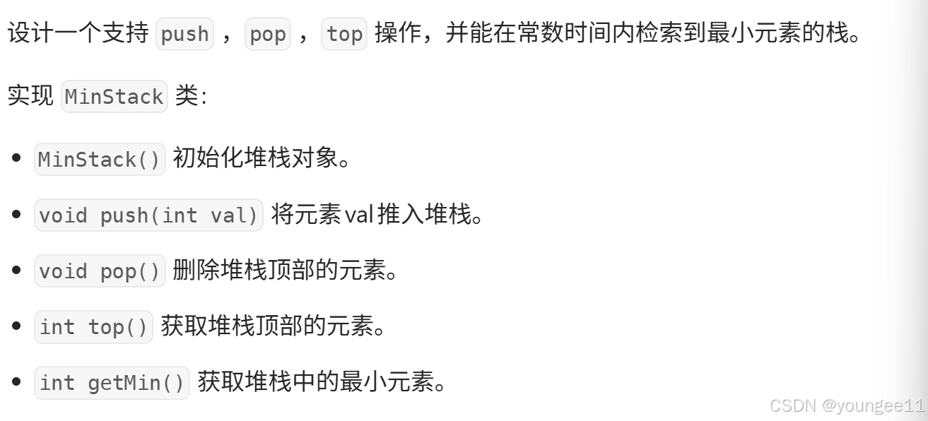 top()获取栈中顶部的元素,getMin()获取栈中最小元素。