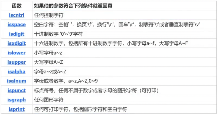 C语言中有一系列的函数是专门用于字符分类的,也就是一个字符是属于什么类型的字符的。