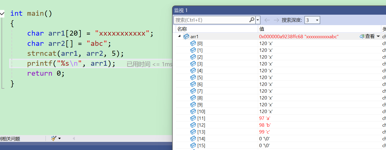 3.此函数会将源字符串中的'\0'拷贝到目标空间;