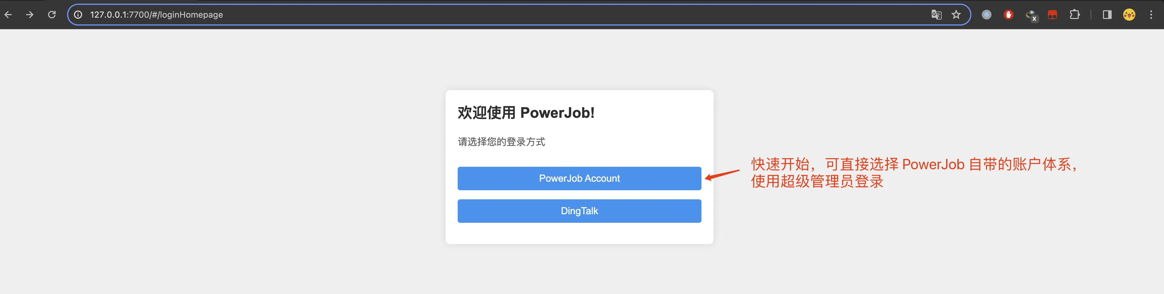 ■ 选择 PowerJob Account进行登录,简单起见可直接使用超级管理员登录(账号 ADMIN,密码 powerjob_admin)
