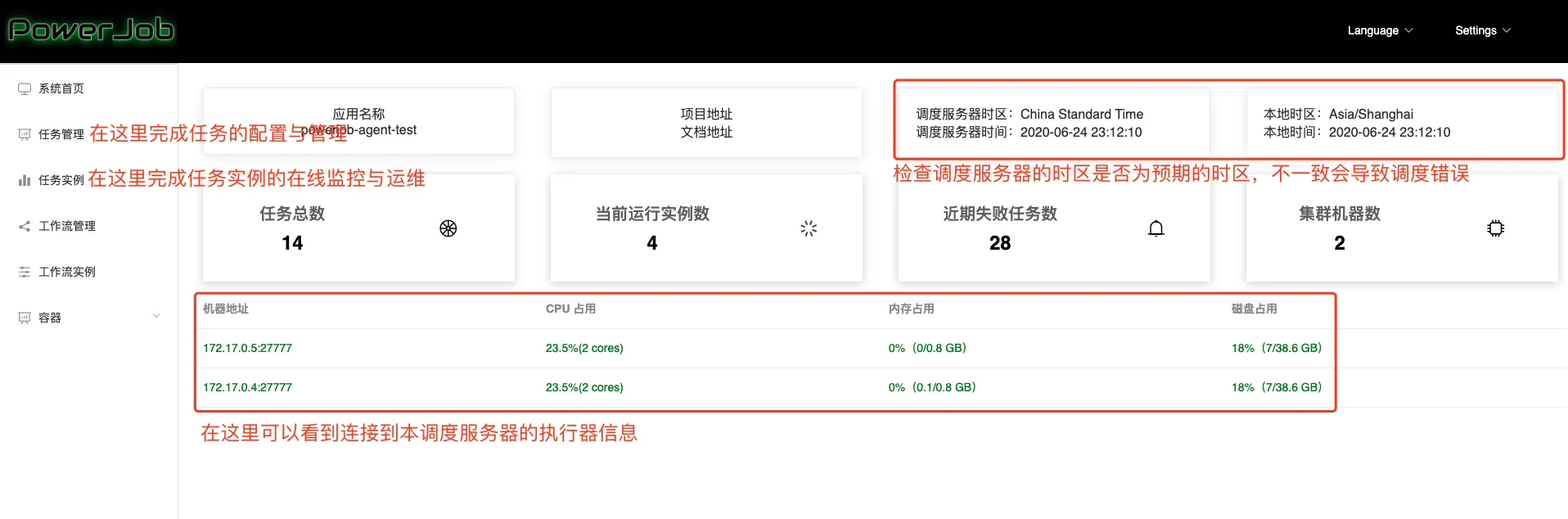 调度服务器与示例工程都启动完毕后,再次前往Web页面( http://127.0.0.1:7700/ ),进行任务的配置与运行。