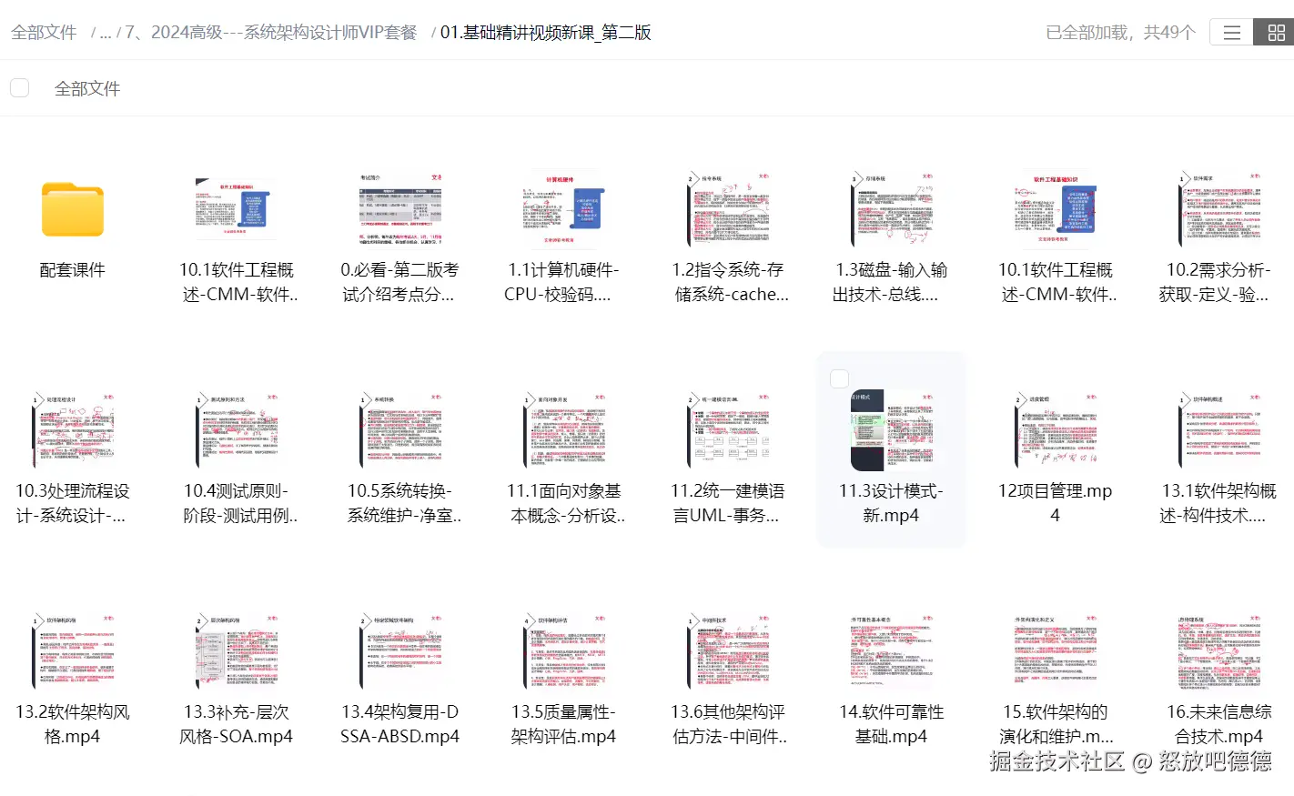可以不需要买教材,有教材的话也不要全看,教材可以作为字典用来查询。主要还是跟着资料的顺序进行学习,一般是先学选择题内容再去学案例题部分,前期这些基础需要 get 到。架构师的考题主要是理解为主,部分需要记忆,考试的时候会有一些是超纲的,但是只要把这些基础的拿下了,基本是稳过的。案例题的话,考试方式近几年都是趋于稳定,第一题是架构风格、质量属性,其他选作题基本就是数据库、嵌入式、web 题。这些如果不是嵌入式工作的,可以考虑直接跳过,复习都可以不复习(选择还是需要复习的,书上部分要记一下,主要是为了选择题)。遇到不会的知识点就百度、或者问 AI。建议学习不用全部学习,像我是个 Java 开发,我就把嵌入式给丢弃了。😁