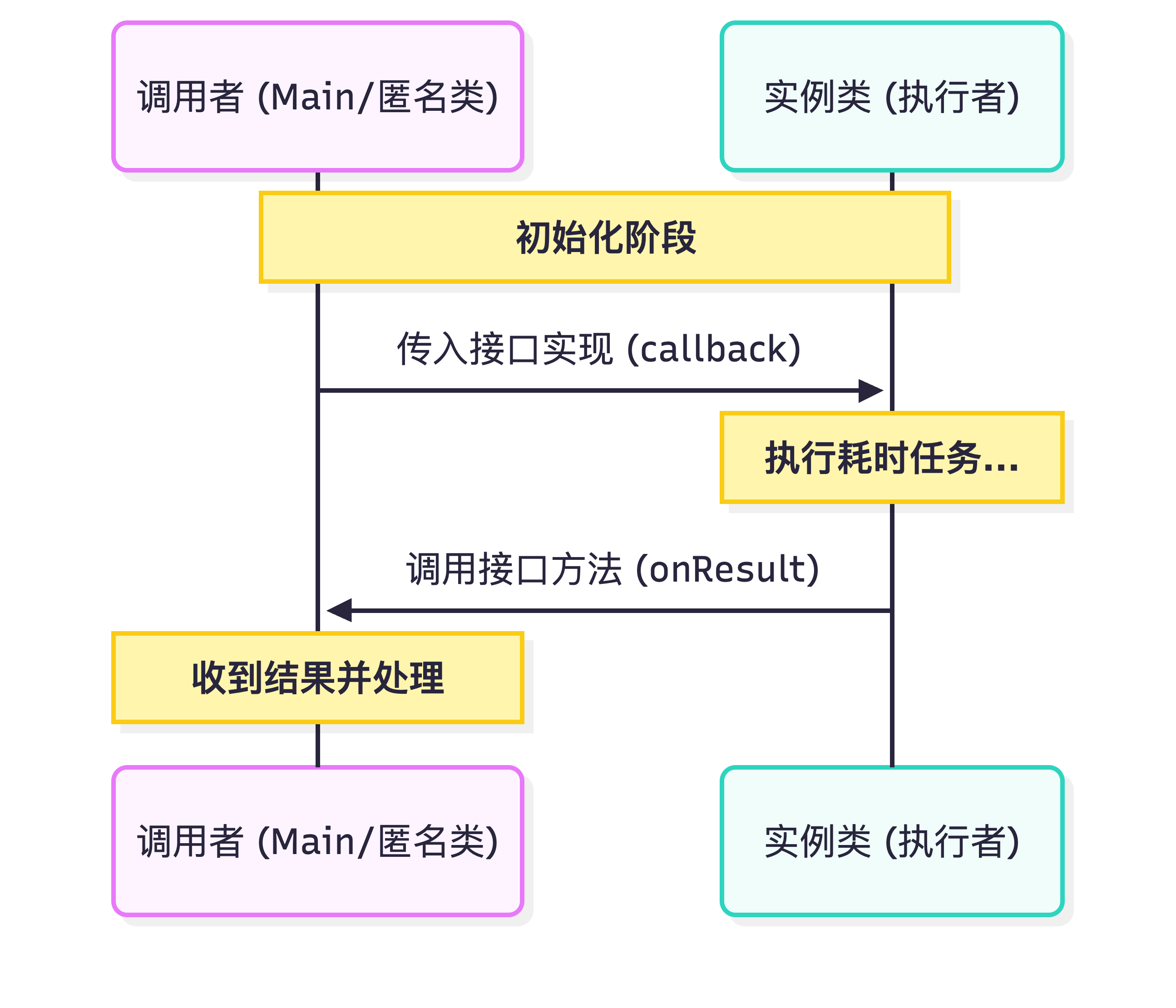实际上,任务执行类并不关注"传入的是哪个类,实现了什么方法",只关注应该怎么调用这个方法 ,而接口回调使得调用这个方法的方式得到了确定