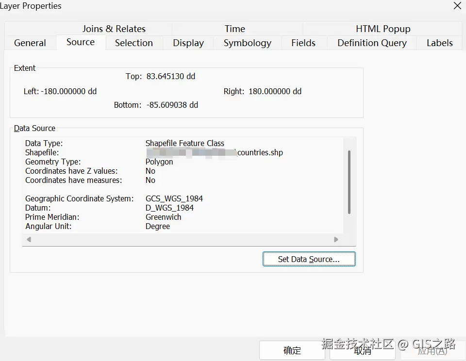 添加Shp图层属性。获取源数据坐标系、属性字段以及几何对象,并将其复制到目标图层中。属性结构显示如下:
