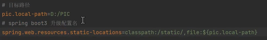 我们这个模块实现对于前端传过来的图片进行接收并且保存,返回了一个索引,所以后续我们需要访问这些图片,我们可以将保存文件的目录也作为该项目的静态资源来访问,1.本地目录,2.该项目的静态资源(static目录,后面是我们自己添加的)