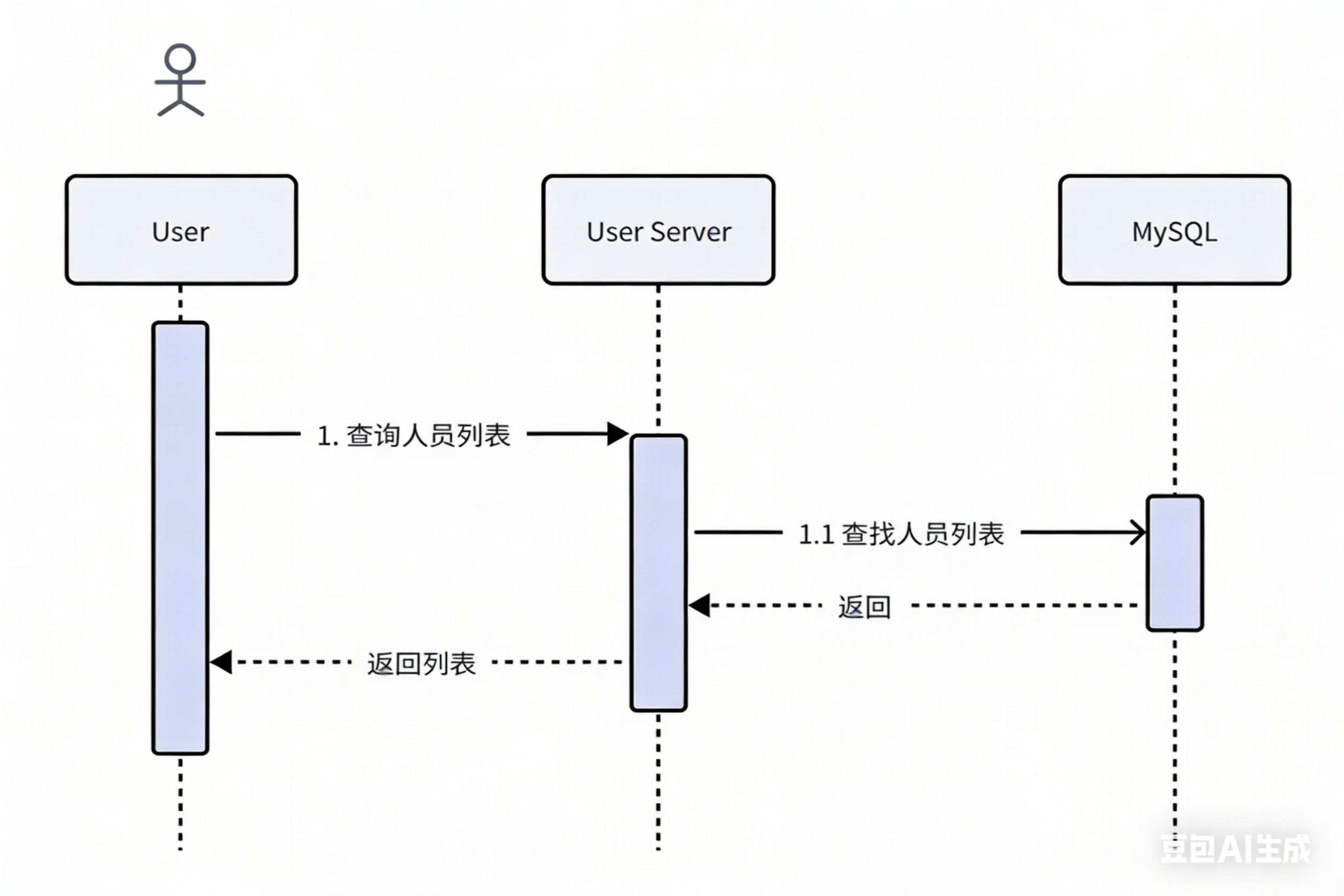 3.获取人员列表展示(对应前端点击人员列表),后端部分时序图