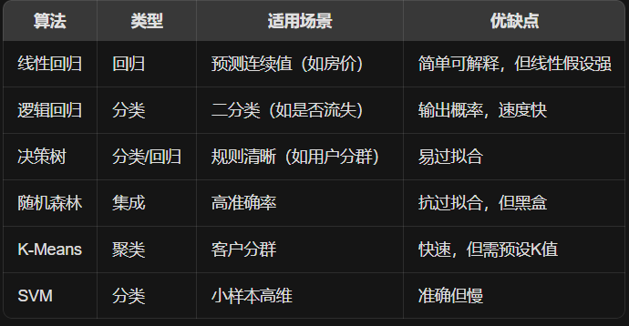 CRISP-DM流程:业务理解 → 数据理解 → 数据准备 → 建模 → 评估 → 部署