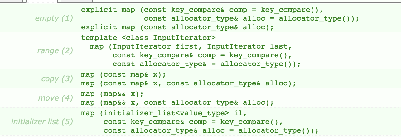 | 初始化依赖 | map 初始化列表的底层是接收一组 pair: std::map<int, string> m = {``{1, "a"}, {2, "b"}} (本质是隐式类型转换)等价于 {make_pair(1,"a"), make_pair(2,"b")}。 |