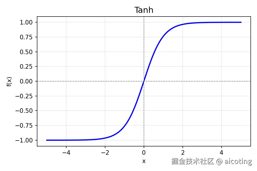 - 优点:输出在 (-1,1),比 sigmoid 居中,对梯度更友好