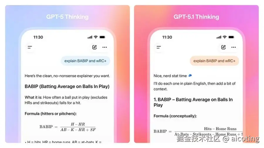 这让 GPT-5.1 Thinking 更像是一位真正的 AI 助手,而不是冷冰冰的算法模型。