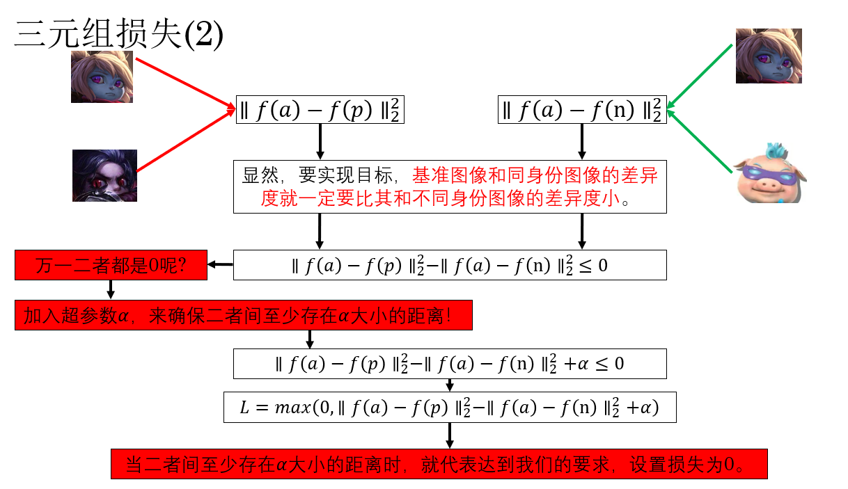 - \(\alpha\):间隔(margin),保证不同身份的距离比同一身份距离至少大 \(\alpha\)
