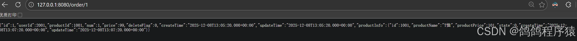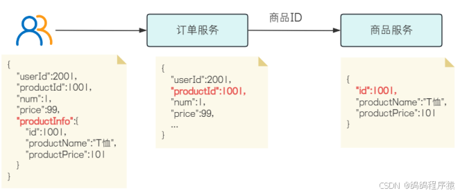 order-service 服务向product-service 服务发送⼀个http请求,把得到的返回结果,和订单结果融合在⼀起,返回给调⽤⽅。
