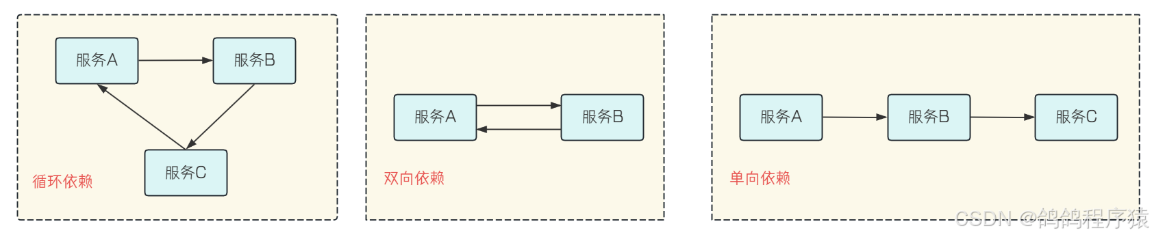 微服务之间需要做到单向依赖,严禁循环依赖,双向依赖。