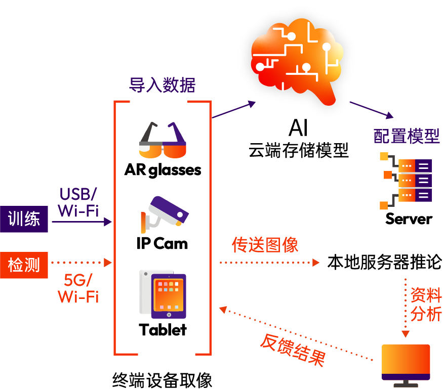 **巡检数据自动管理:**AR 眼镜自动记录巡检路径、缺陷照片、设备运行参数,数据同步至本地服务器与企业主服务器,生成标准化巡检报告,便于复盘优化。