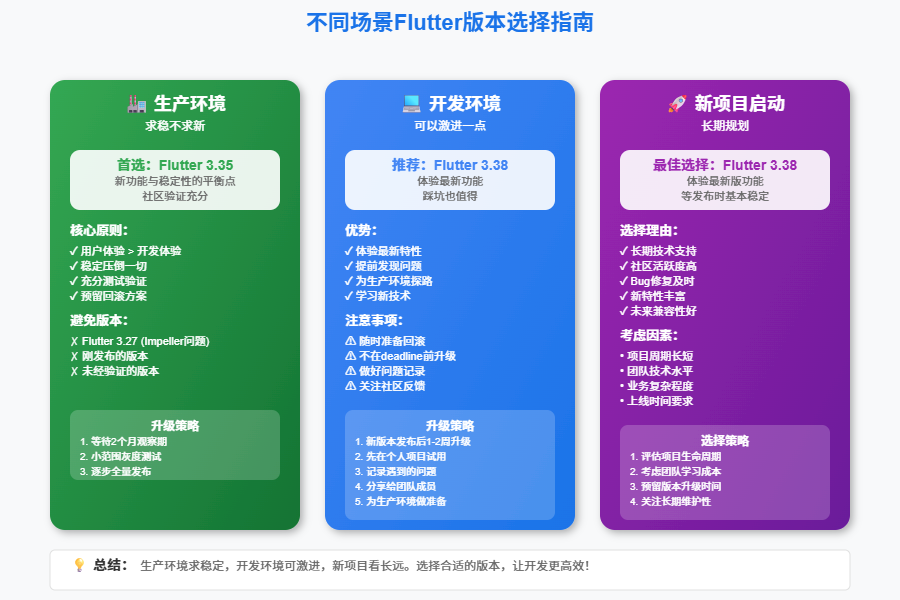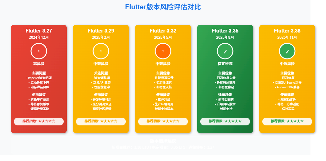 - 何时选3.38? :如果你的App急需 Google Play 16 KB 页面大小兼容 (Android)或者非常依赖 Widget Previewer 进行开发,且团队有能力处理iOS的