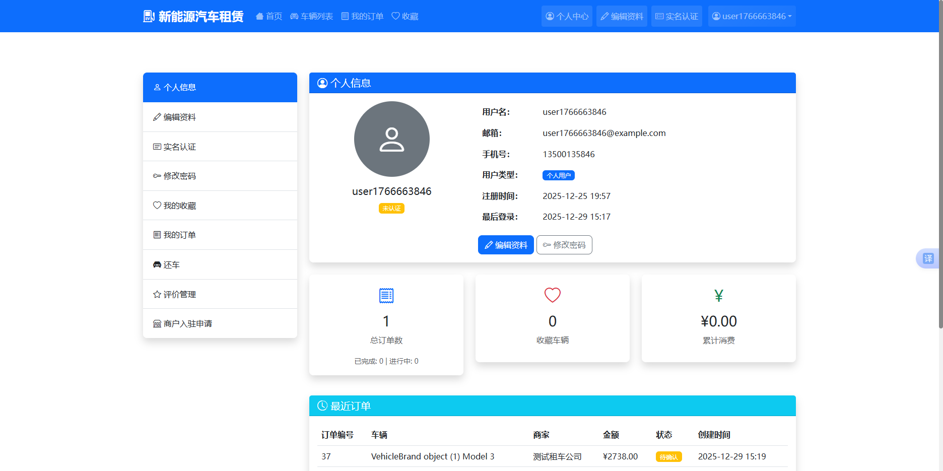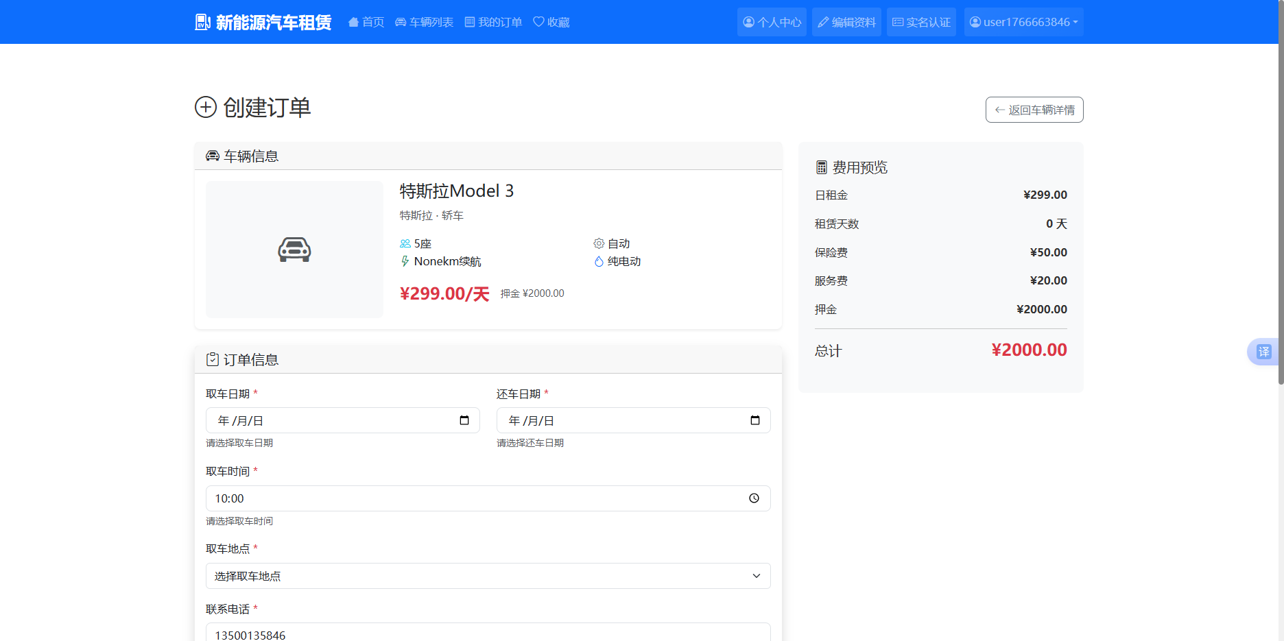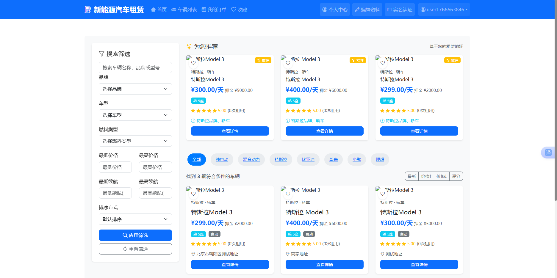 新能源汽车租赁平台的智能推荐系统,基于用户行为、评分、租赁历史等多维度数据,为用户提供个性化的车辆推荐服务。