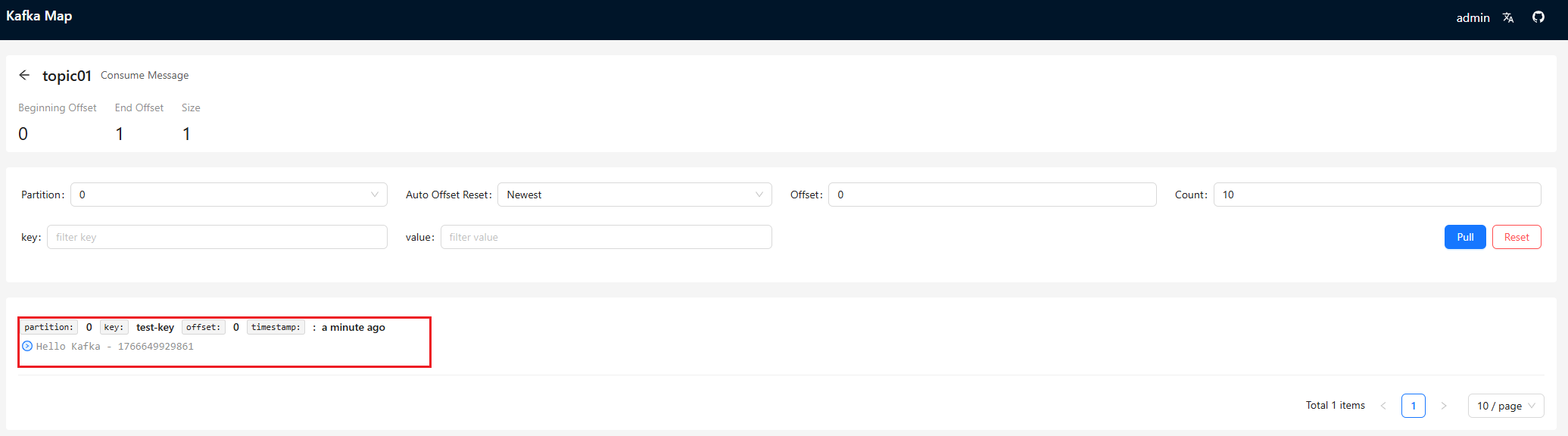 3、查看结果,可以看到发送成功,kafka也成功接收到了发送的消息