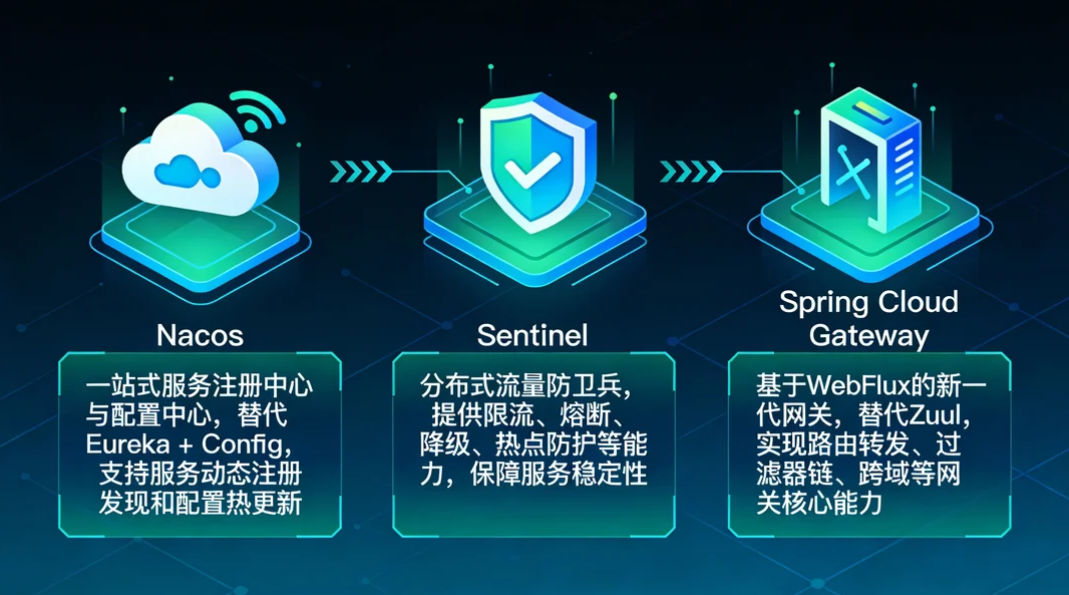 Spring Cloud Alibaba 生态中,这三大组件各司其职:
