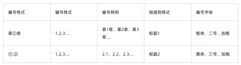 ③为章节标题设置如下表所示的多级编号,并删除重复的手动编号。