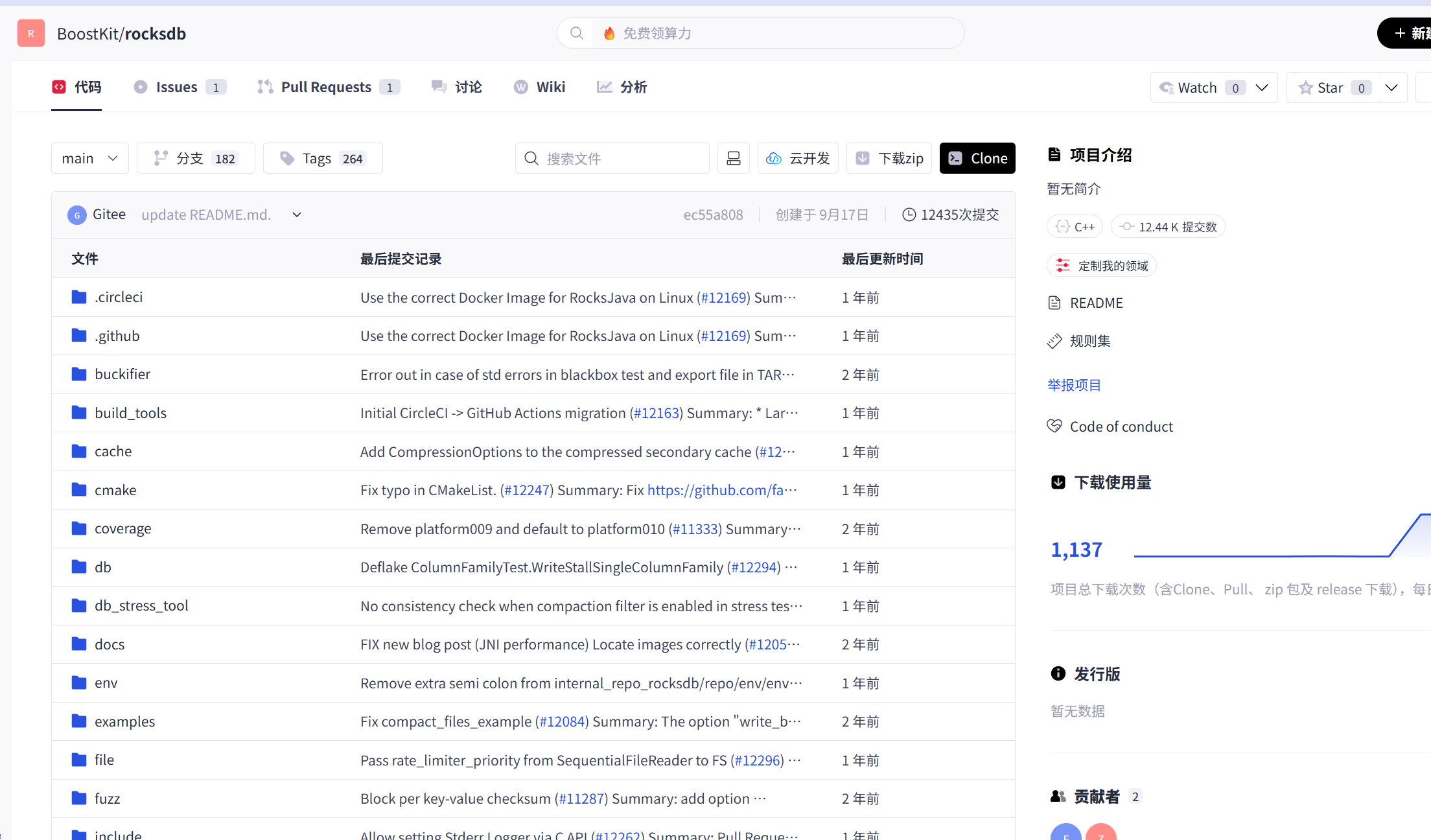 源码放在GitCode的仓库:https://gitcode.com/boostkit/rocksdb。
