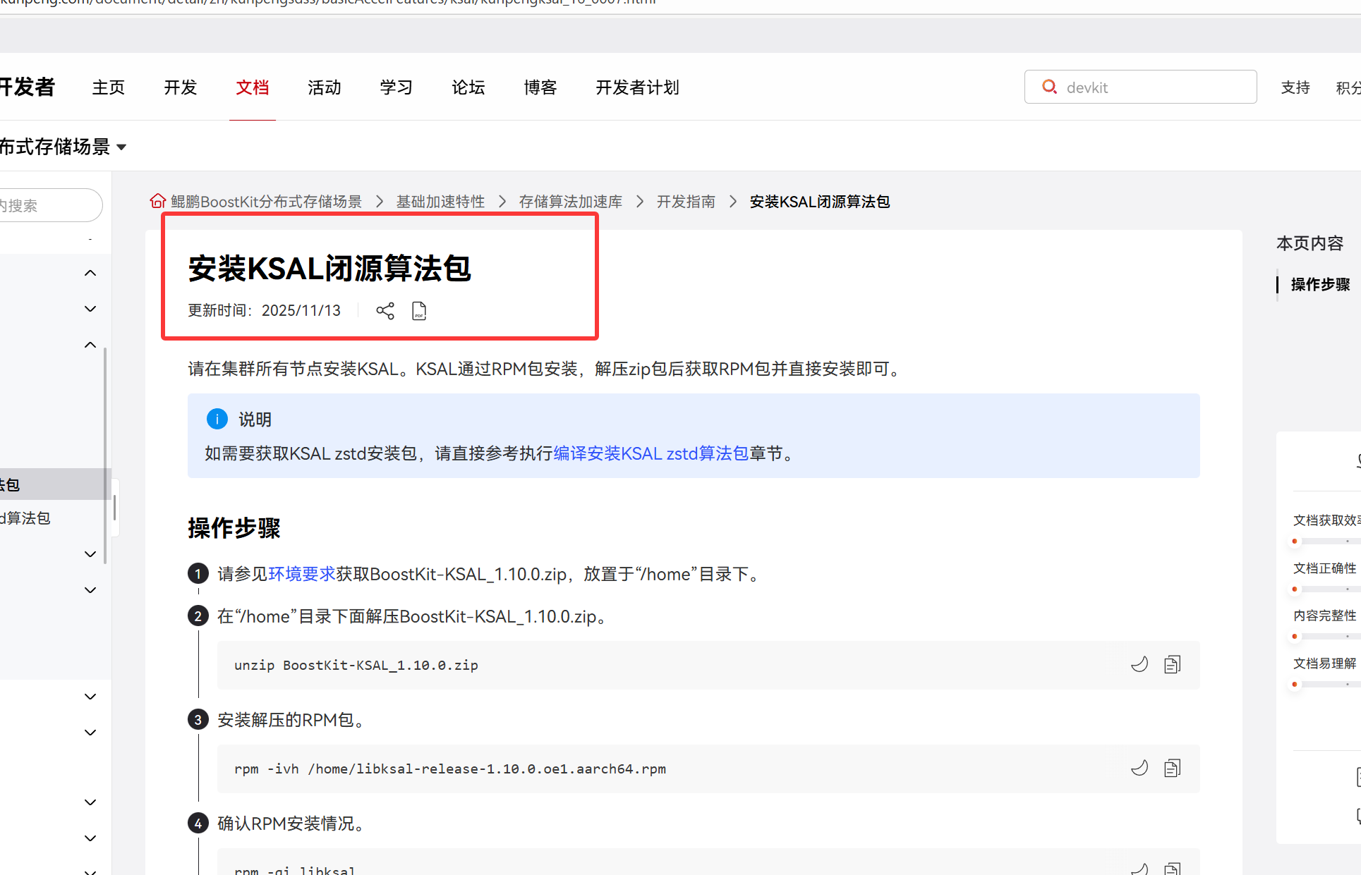 编译 RocksDB 时需要 BoostKit-KSAL 库文件,但该算法包闭源无法直接下载。
