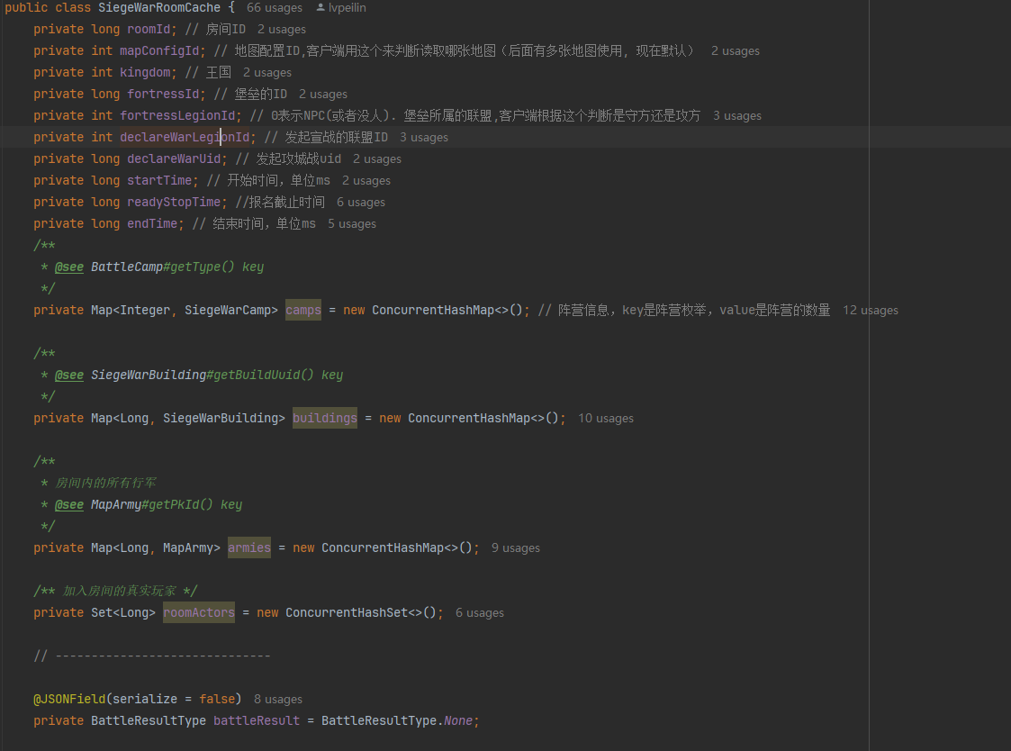 ConcurrentHashMap 是线程安全,这个问题,是因为 SiegeWarRoomCache 通过 FastJson 存储在 redis中,在启动的时候加载。虽然字段做了
