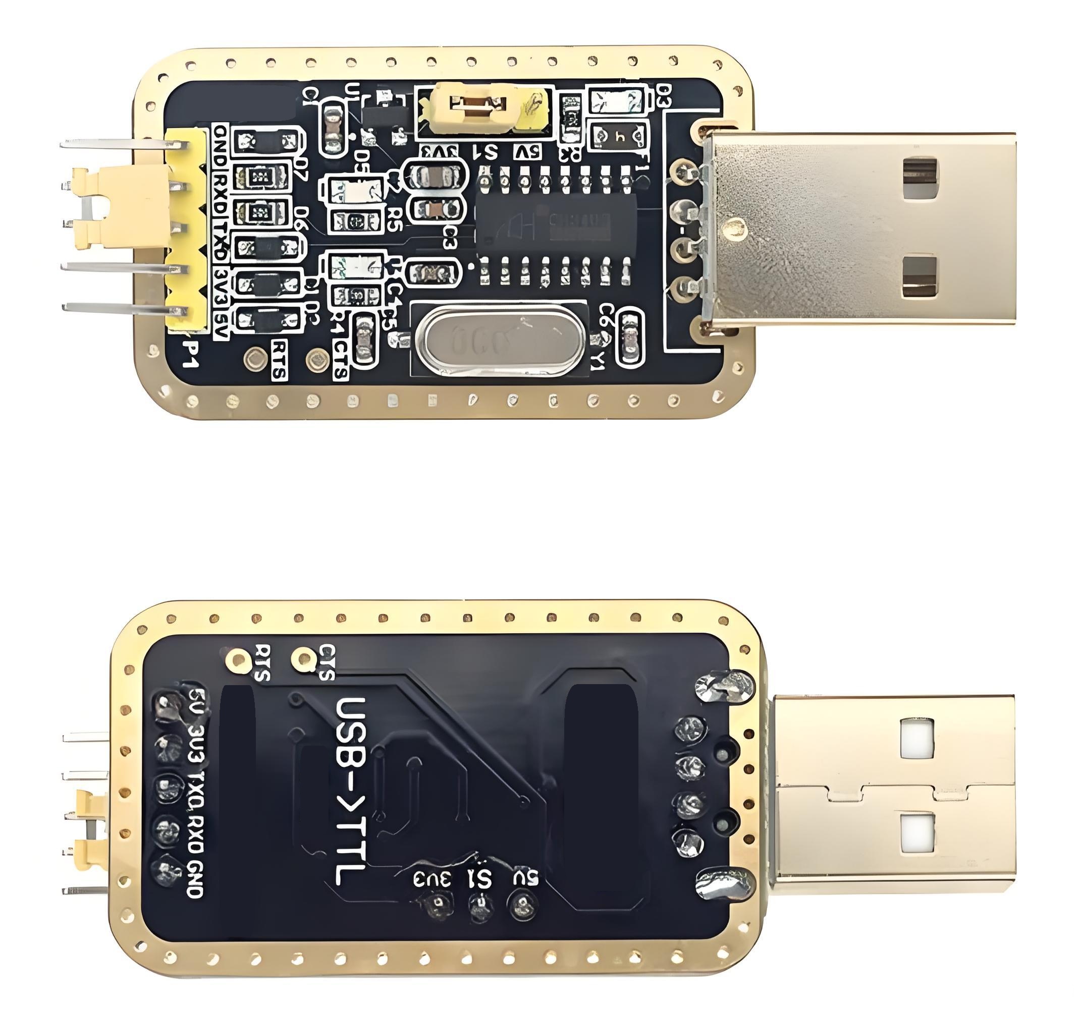 协议转换与数据传输: 该模块内部集成专用芯片(如CP2102N、FT232RL或CH340),负责处理USB与串行协议之间的转换,包括数据包的拆分、重组、波特率同步及错误检测,确保数据在高速USB与低速串行总线间稳定传输;例如,上位机通过USB发送数据包时,模块会将其解析并串行化输出至TXD引脚,接收方向则相反。