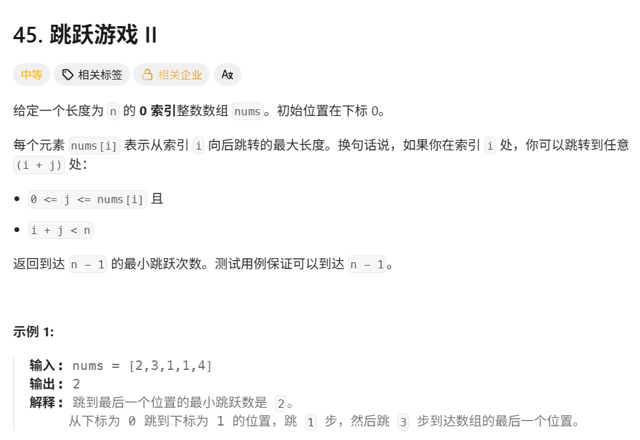 欢迎来到贪心算法专题第六篇! 这道题是跳跃游戏的进阶版。想象一下,你还是要从起点跳到终点,但这次我们要比拼速度(步数)。 关键在于:什么时候进行"下一次跳跃"?