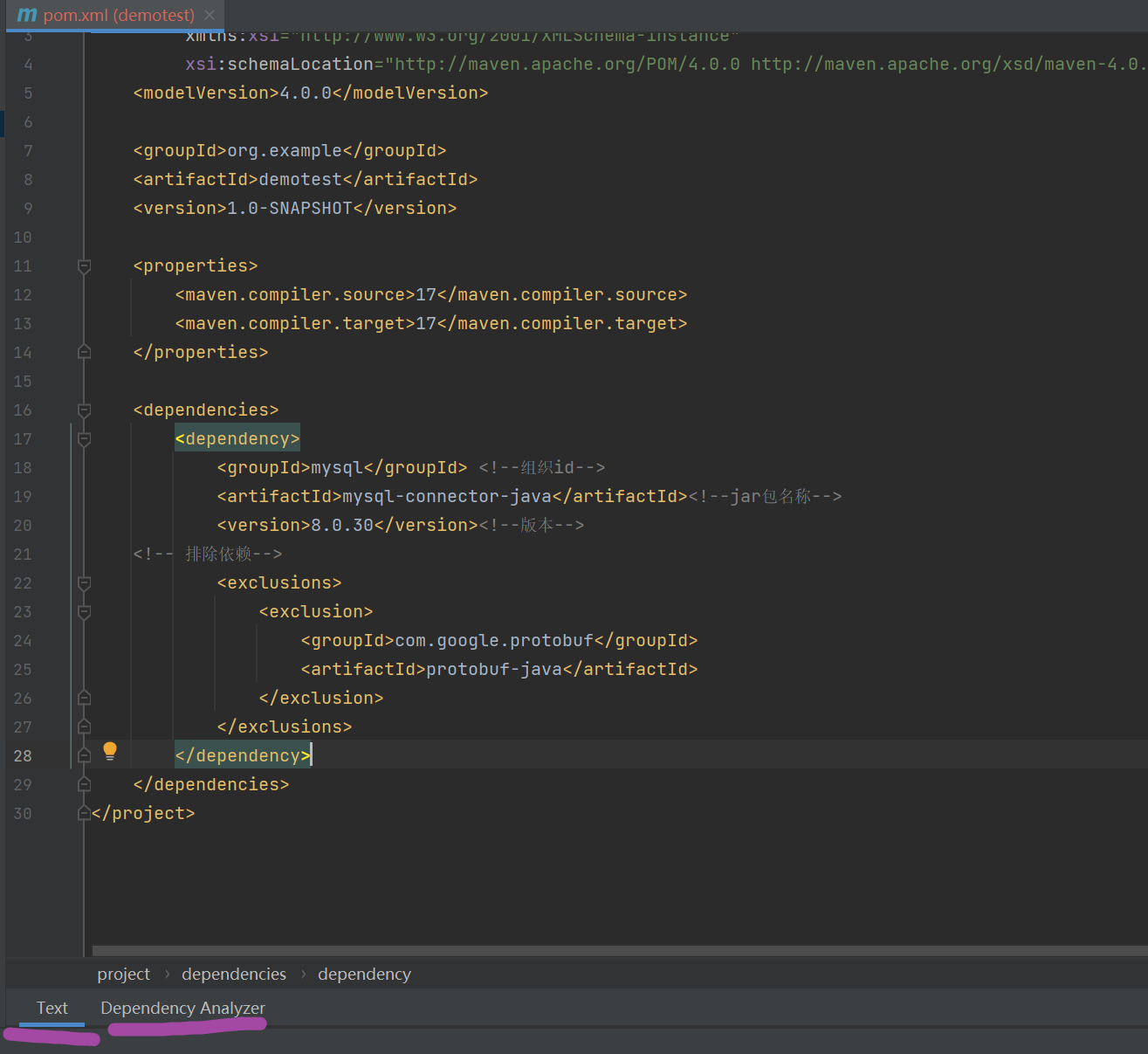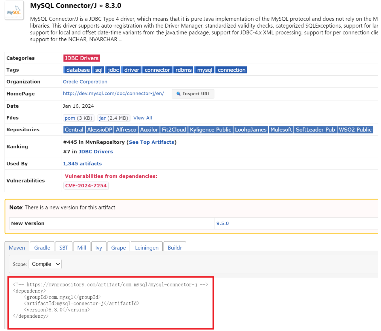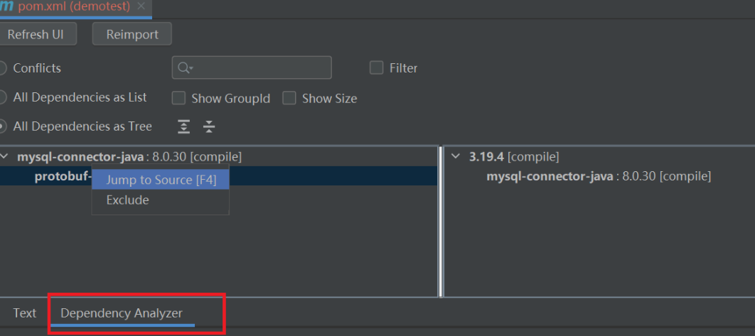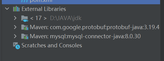 但是发现一个问题,我们刚才只导入了mysql-connector-java包,但是此时它为什么把protobuf-java这个包也加入进来了呢?这个是传递依赖问题