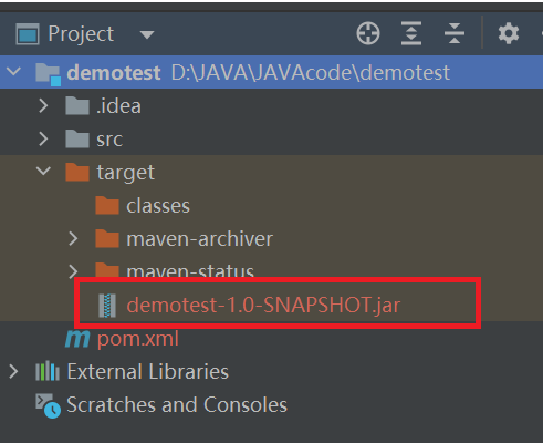 此时这里就会自动生成一个target文件,里面有刚才的jar包