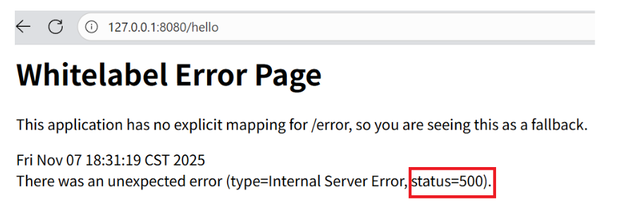 输入网址:http://127.0.0.1:8080/hello访问,访问本机的8080端口号