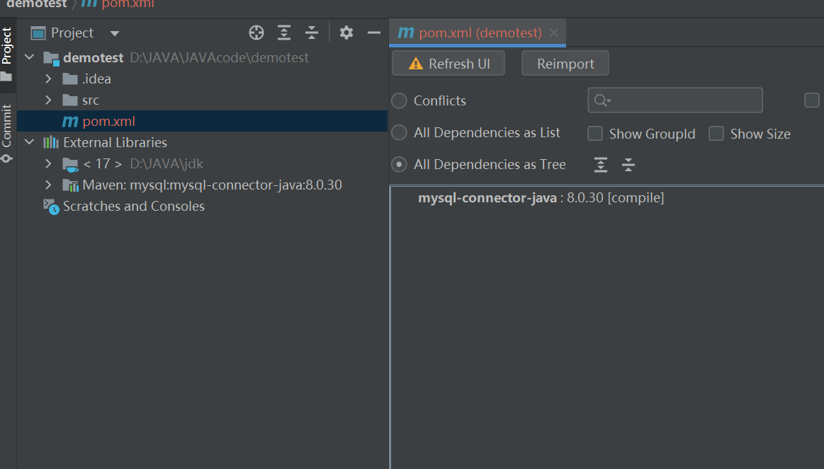Maven中,根据groupId 、artifactId、version进行配置,唯一标识一个jar 包,缺一不可,此时在pom.xml文件中写下这些东西,点击刷新,Maven会根据坐标的配置,去仓库中找对应Jar包下载进来
