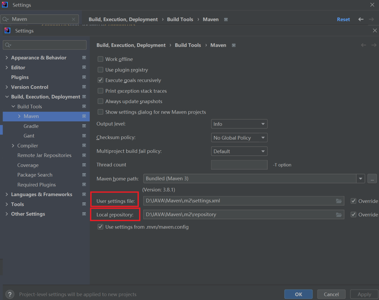 Locla repository 这个最开始是空的,但是随着Maven的使用,该仓库下会越来越多Jar包