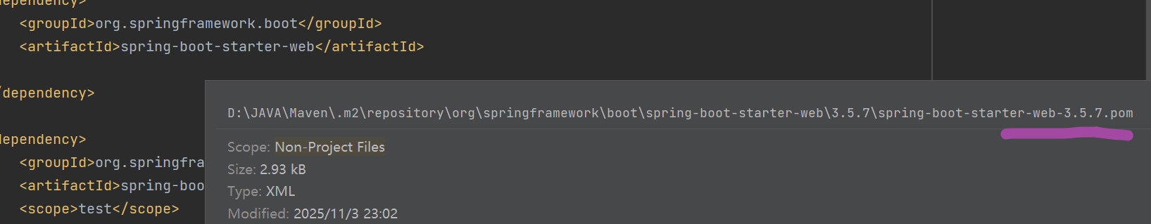因为每创建一个SpringBoot工程,都有一个父工程,依赖的版本号,由父工程统一管理,因此这里是通过父工程自动引入所指定的版本号