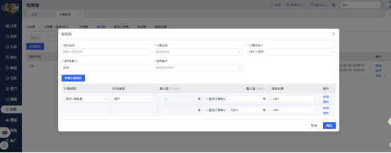 4.订单数量阶梯计费,灵活适配业务量:针对出库订单数量,支持设定区间价。比如A客户每天前50单每单1元,51-100单每单0.8元,若当天出库60单,系统会自动计算"50*1+10*0.8=58元",不用人工拆分核算,大大提升了效率。