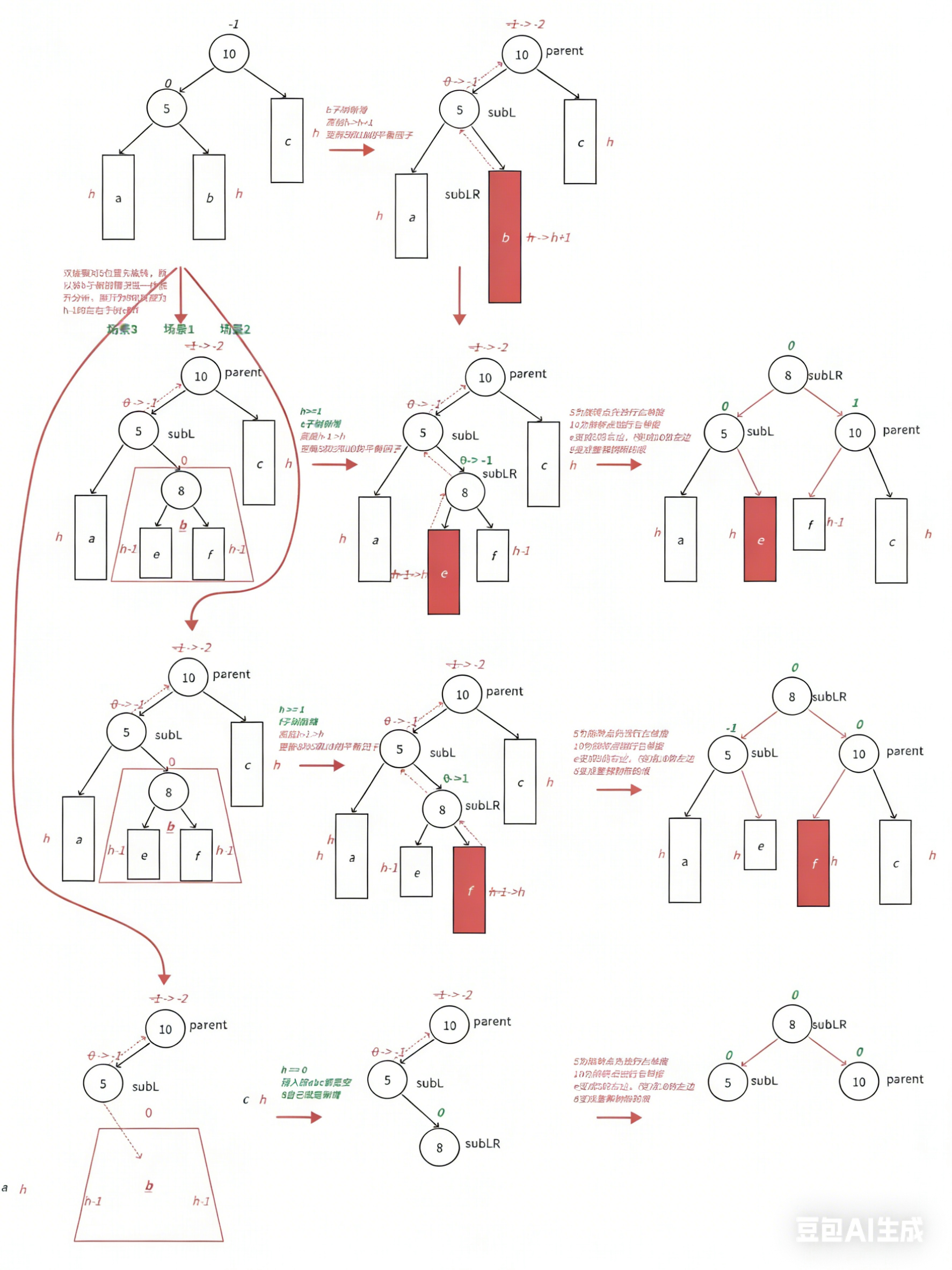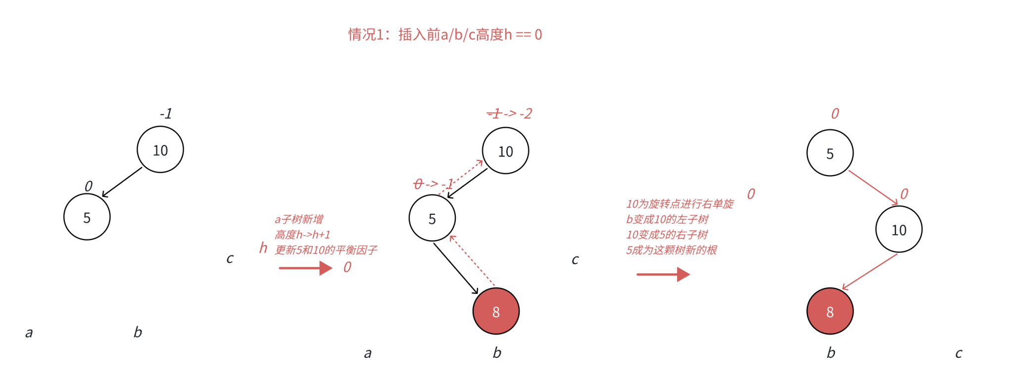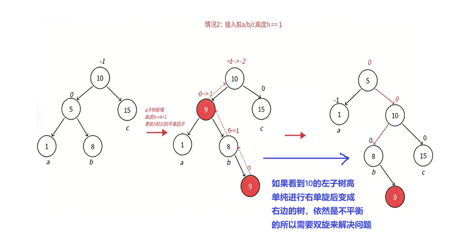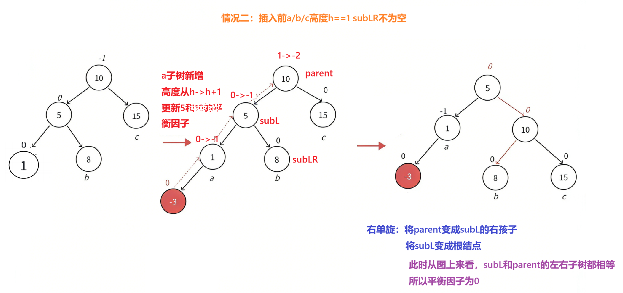 平衡因子更新的几种情况: