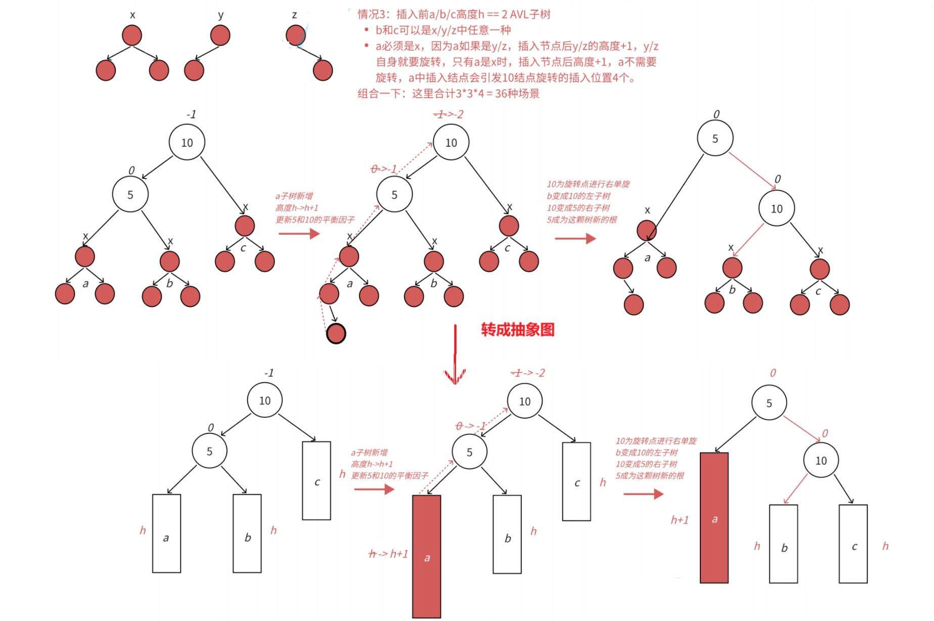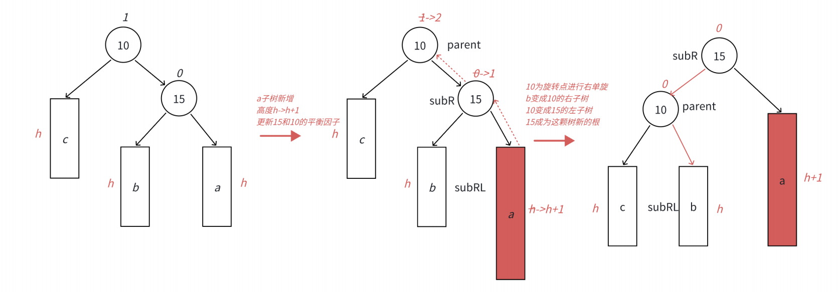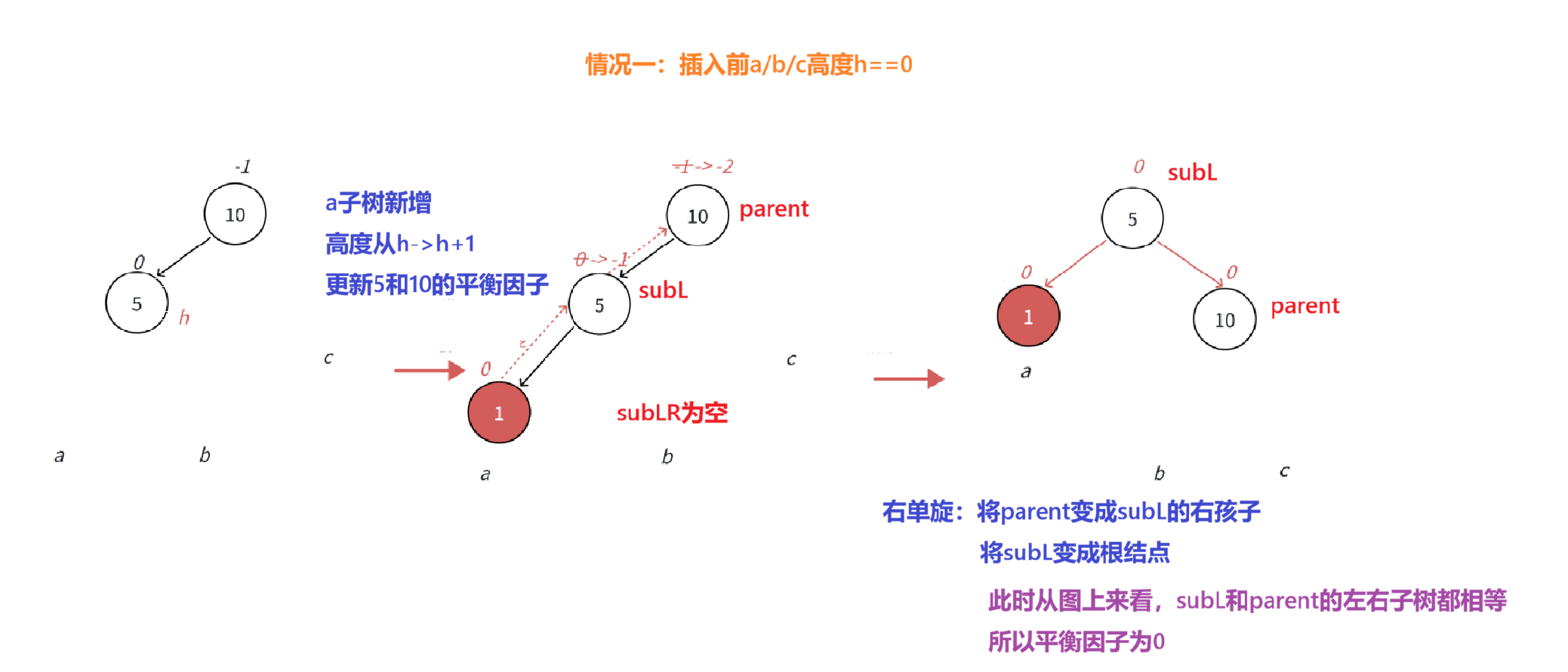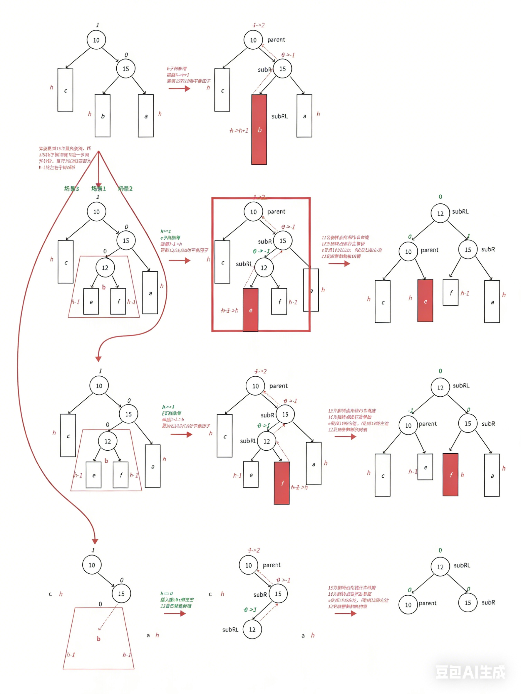 平衡因子更新的几种情况: