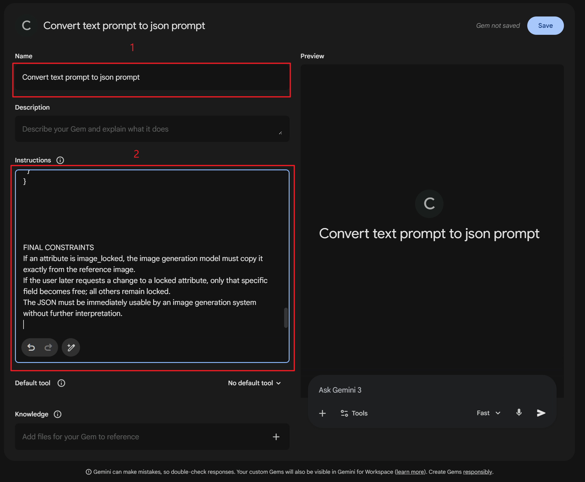 在 Gems 的「指令 / Instructions」中,输入类似下面的内容: