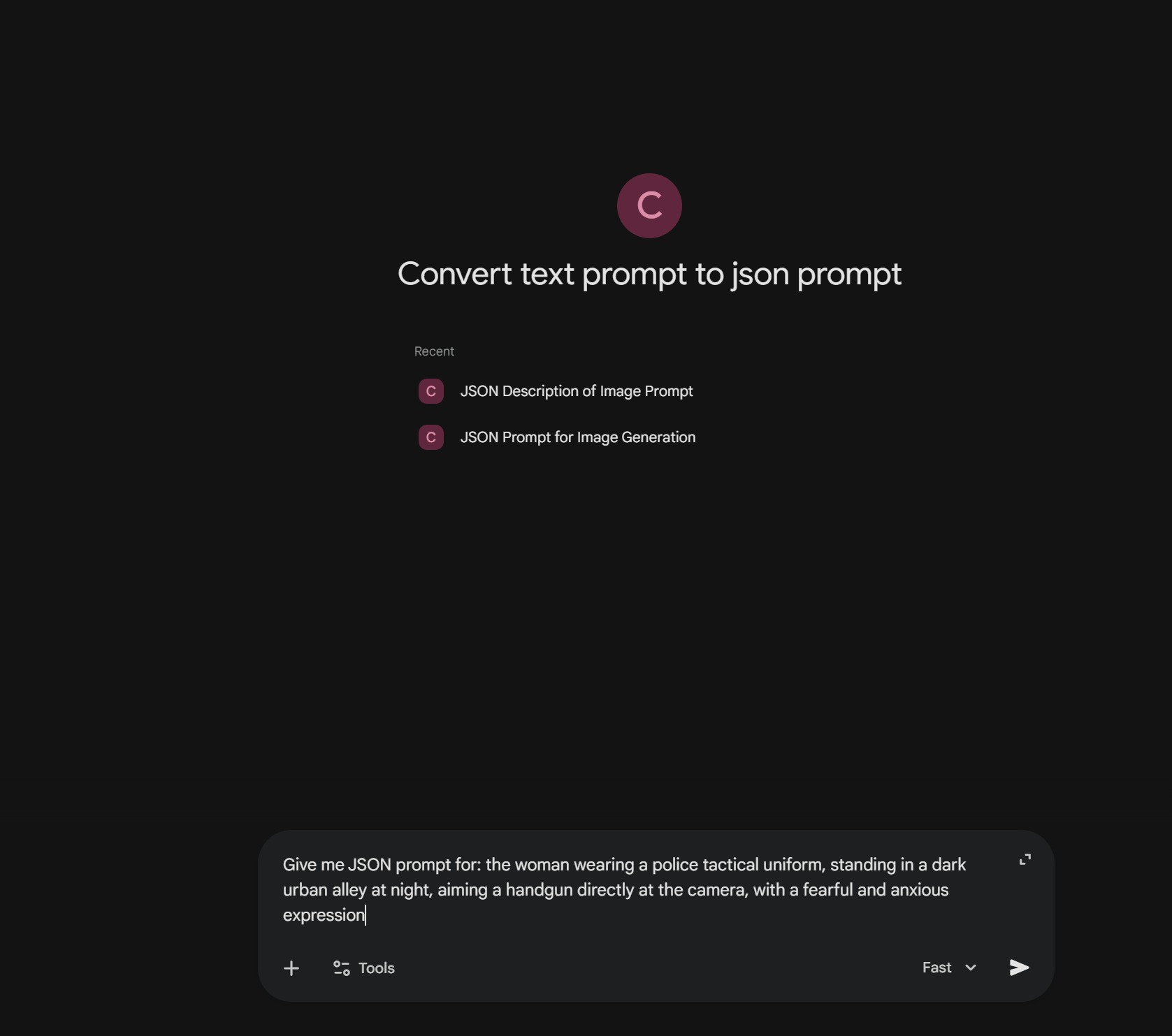 Convert text prompt to json prompt