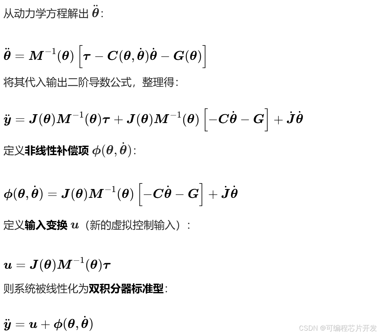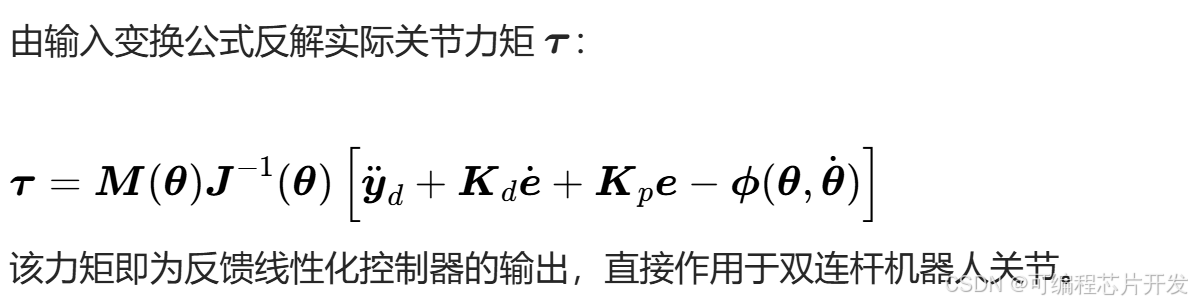 完全线性化:通过非线性补偿消除了惯性耦合、科氏力和重力的影响,系统转化为线性系统。